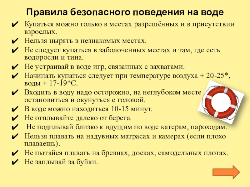Нельзя плавать на надувных матрасах и камерах (если плохо плаваешь).