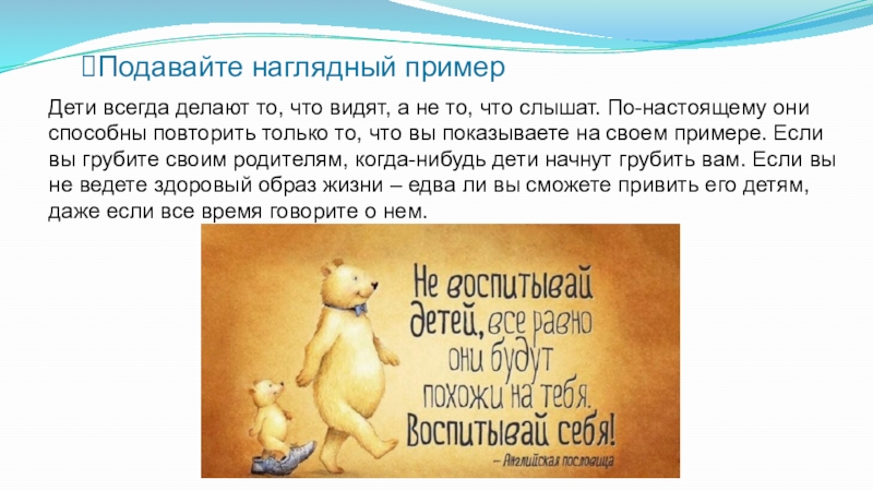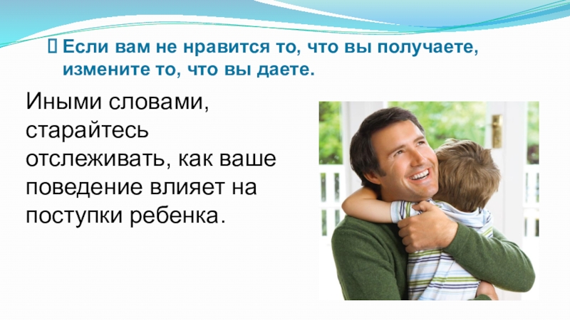 Иными словами, старайтесь отслеживать, как ваше поведение влияет на поступки ребенка.