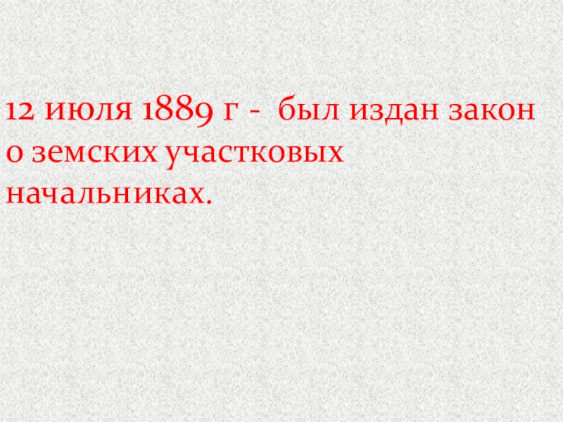 12 июля 1889 г - был издан закон о земских участковых начальниках.