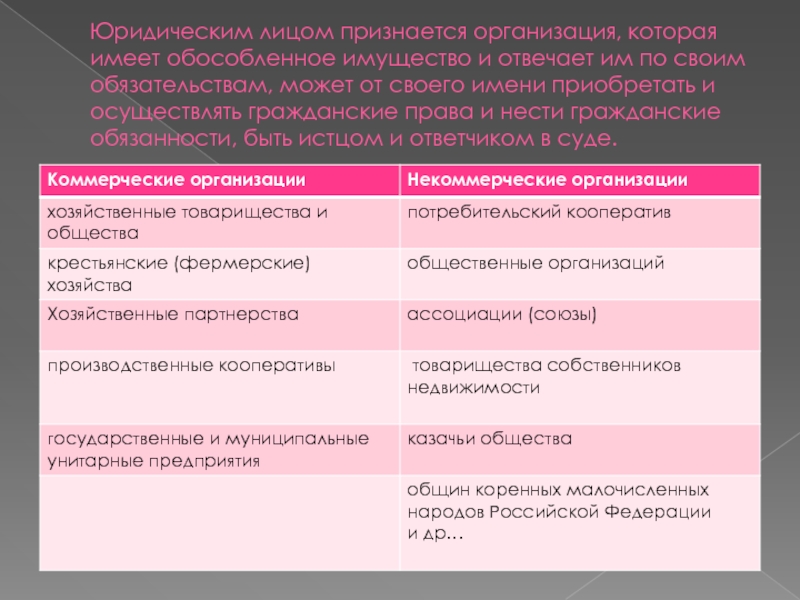 Слайд 6Юридическим лицом признается организация, которая имеет обособленное имущество и отвечает им