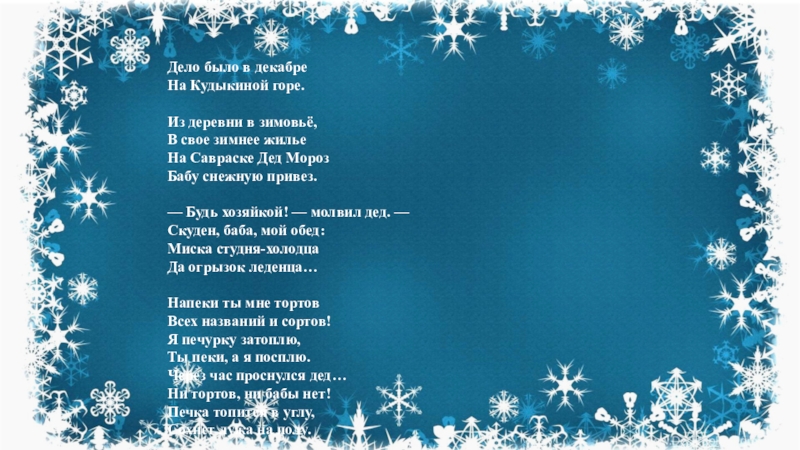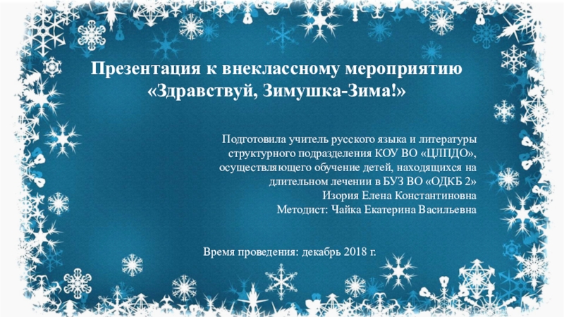 Слайд 1Презентация к внеклассному мероприятию «Здравствуй, Зимушка-Зима!»