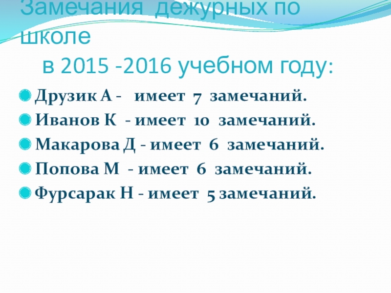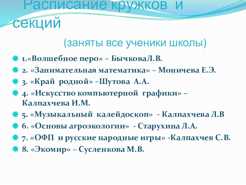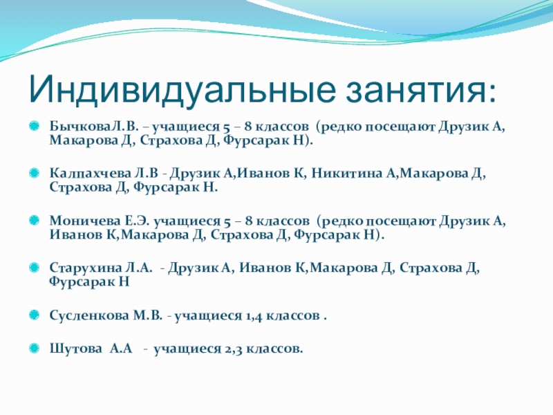 БычковаЛ.В. – учащиеся 5 – 8 классов (редко посещают Друзик