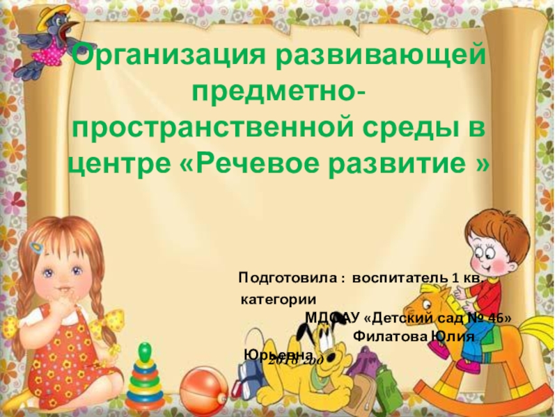Организация развивающей предметно- пространственной среды в центре «Речевое развитие »