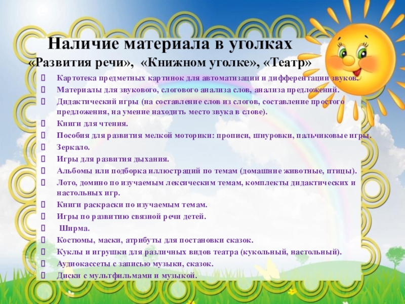 полноценного речевого развития детей предусматривает обеспечение развивающей предметно–пространственной среды в ДОУ.
