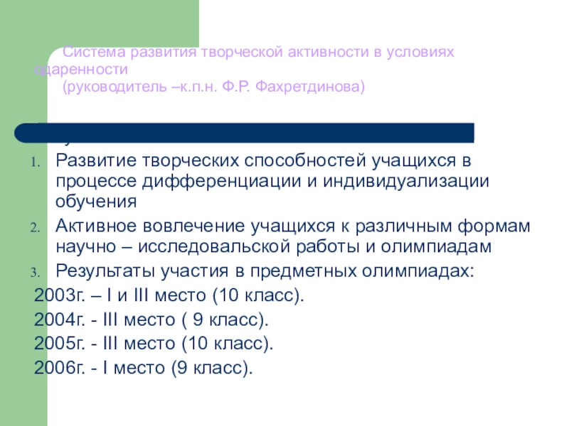 Развитие творческих способностей учащихся в процессе дифференциации и индивидуализации обучения