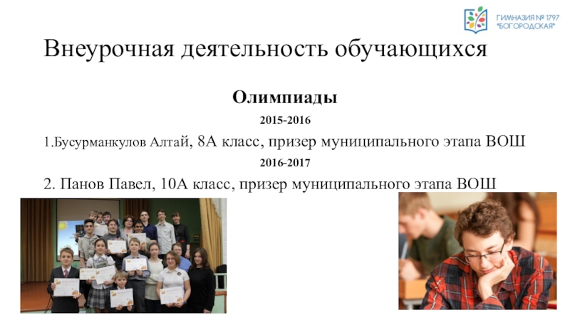 1.Бусурманкулов Алтай, 8А класс, призер муниципального этапа ВОШ