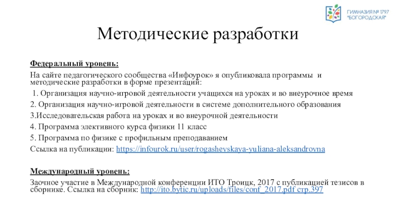 Ссылка на публикации: https://infourok.ru/user/rogashevskaya-yuliana-aleksandrovna