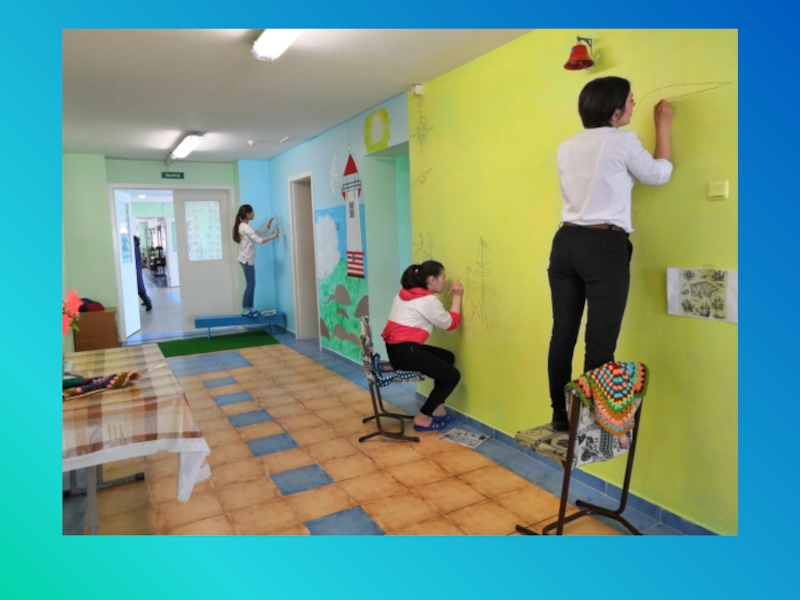 проекта еще не достигнута. Но, что самое важное, мы стали дружной командой и участниками создания эстетически благоприятных условий для проживания в интернате. Совсем не важно, что мы оформили стены не всего коридора, а всего лишь часть. Главное, взявшись за дело мы доведем его до конца.