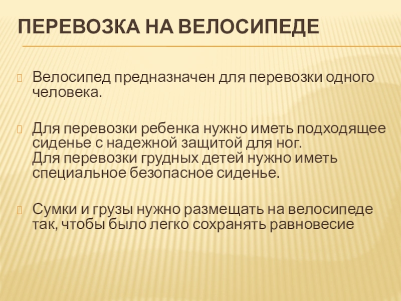 Сумки и грузы нужно размещать на велосипеде так, чтобы было легко сохранять равновесие