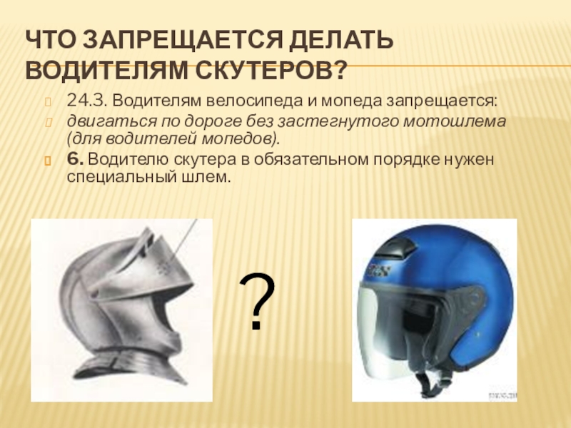 6. Водителю скутера в обязательном порядке нужен специальный шлем.