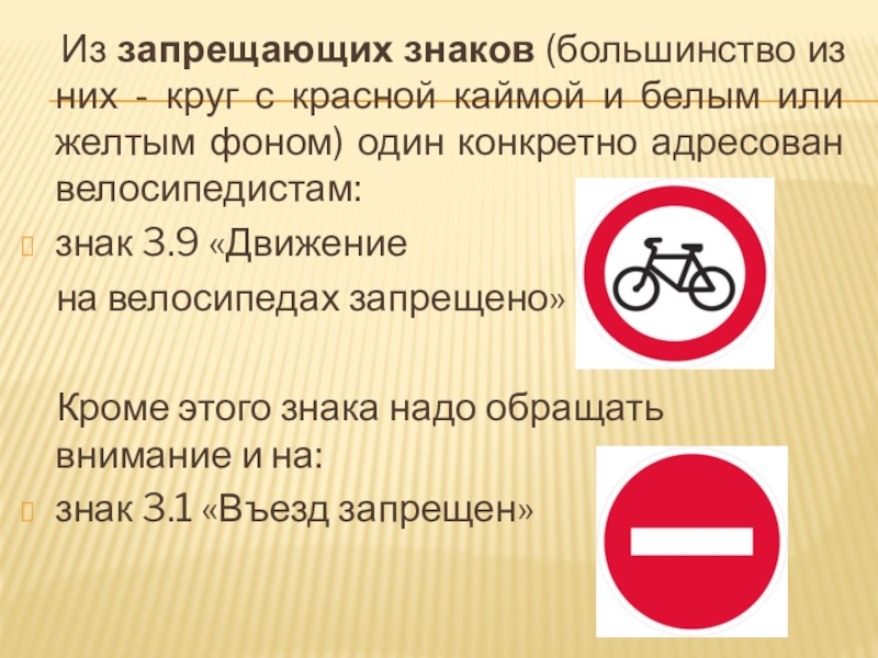 красной каймой и белым или желтым фоном) один конкретно адресован велосипедистам: