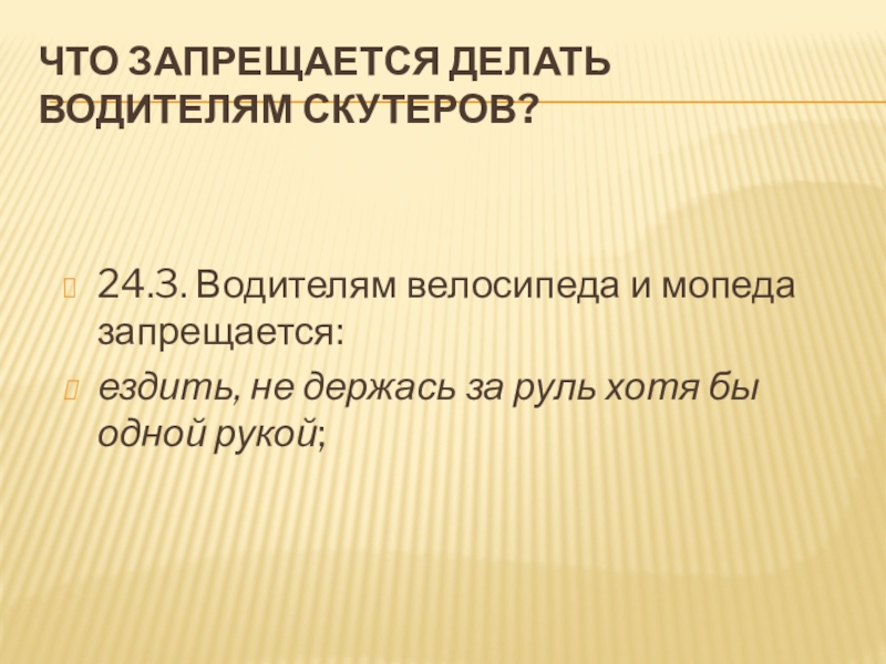 24.1. Управлять велосипедом, гужевой повозкой (санями), быть