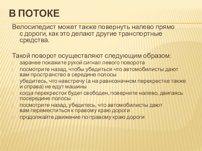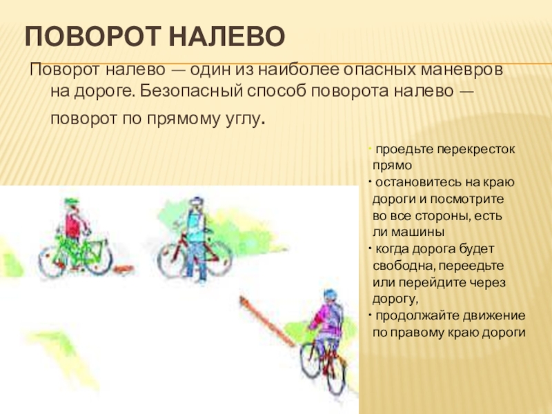 Велосипедист может также повернуть налево прямо с дороги, как это делают другие
