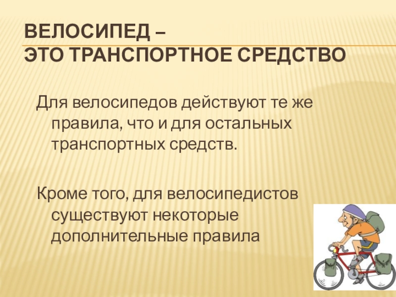 Кроме того, для велосипедистов существуют некоторые дополнительные правила