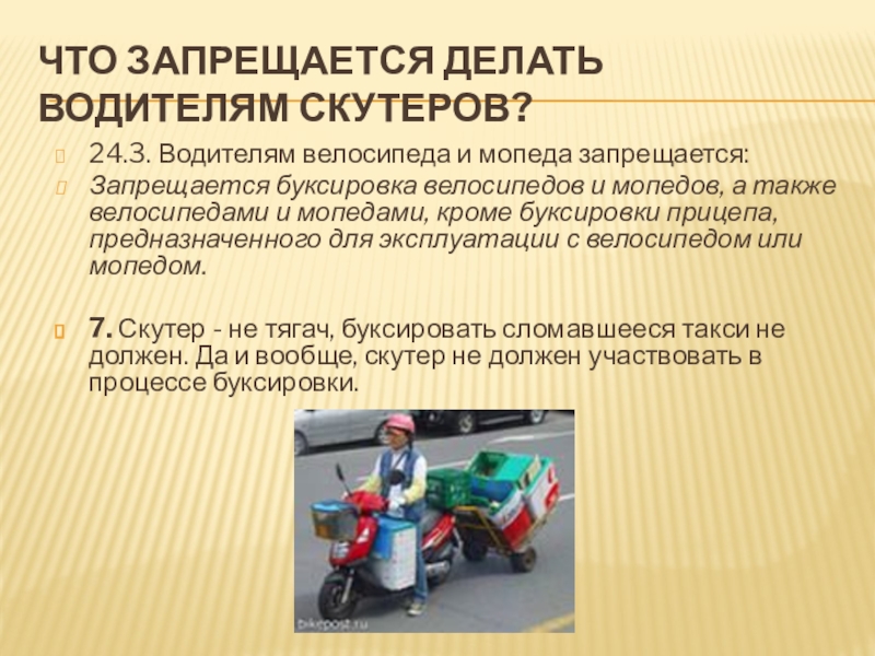 велосипедов и мопедов, а также велосипедами и мопедами, кроме буксировки прицепа, предназначенного для эксплуатации с велосипедом или мопедом.