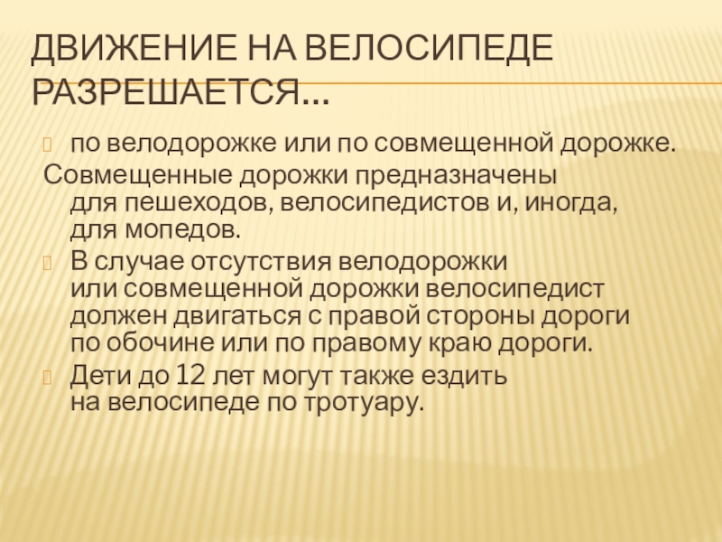 Дети до 12 лет могут также ездить на велосипеде по тротуару.