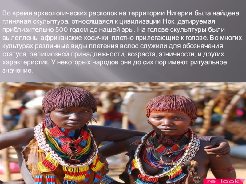 Слайд 2Прически африканского населения, несмотря на примитивность их исполнения, были, весьма разнообразны