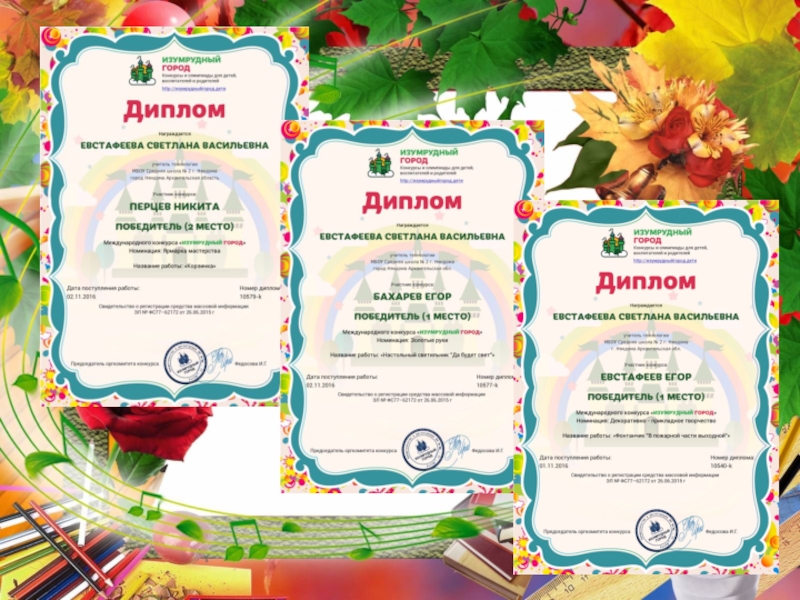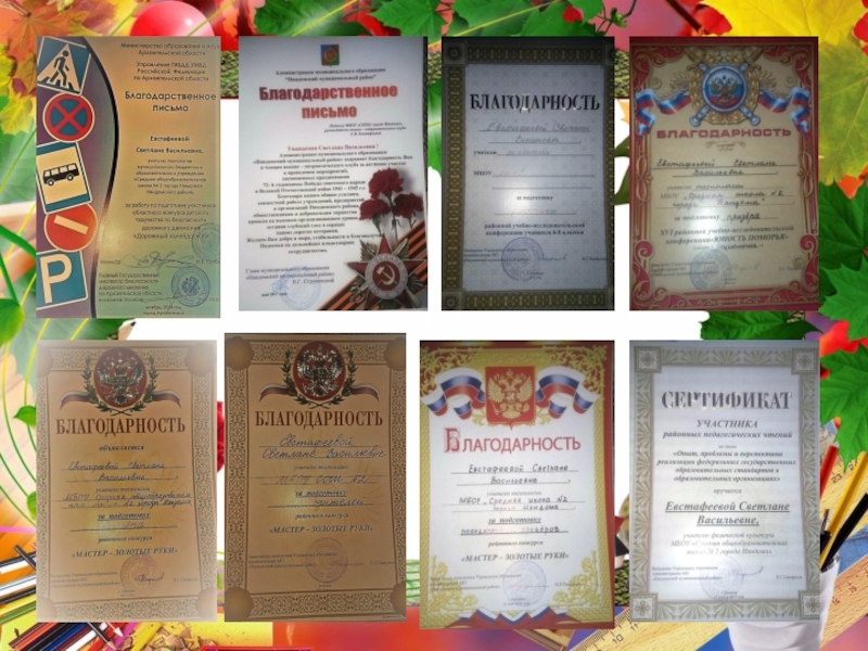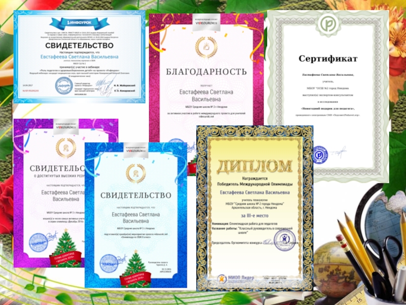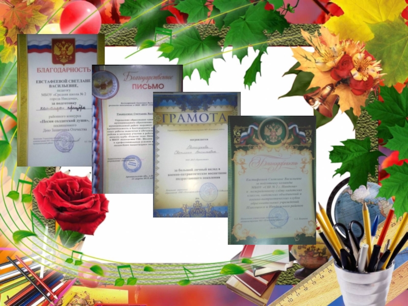 Презентация Приложение к портфолио. Мои успехи. Евстафеева С.В. Разное