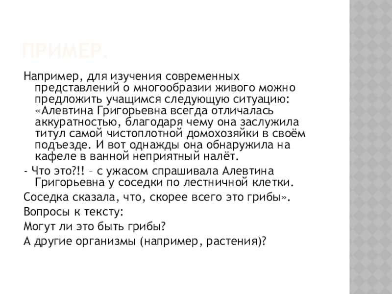 Например, для изучения современных представлений о многообразии живого можно предложить учащимся