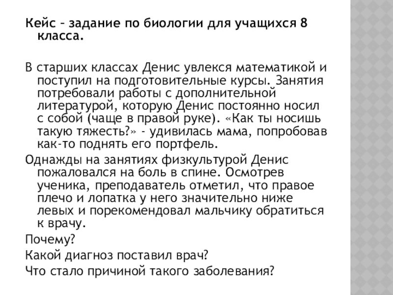 Слайд 11Кейс – задание по биологии для учащихся 8 класса.