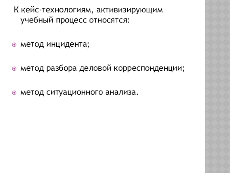 Слайд 3К кейс-технологиям, активизирующим учебный процесс относятся: