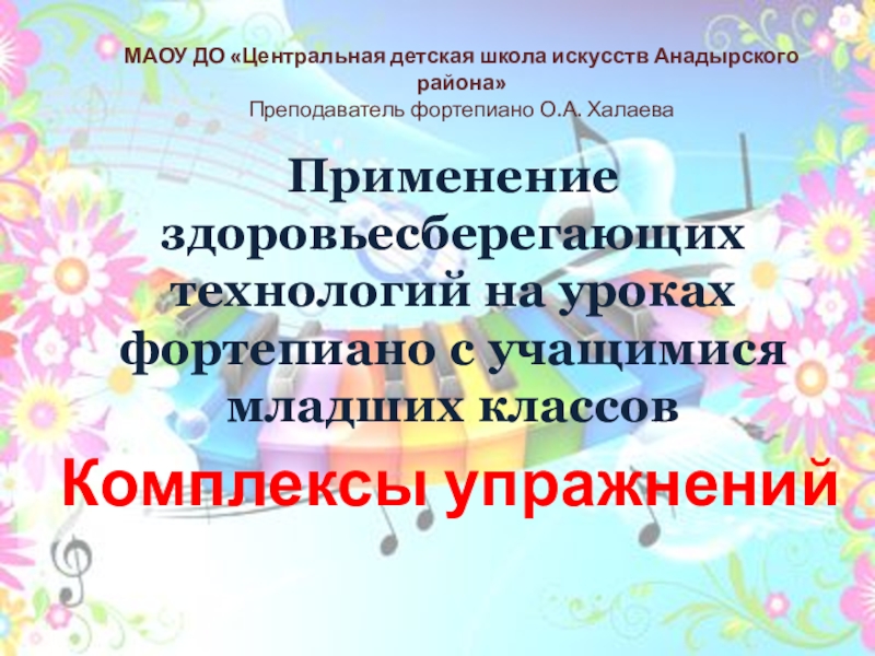 Слайд 1Применение здоровьесберегающих технологий на уроках фортепиано с учащимися младших классов