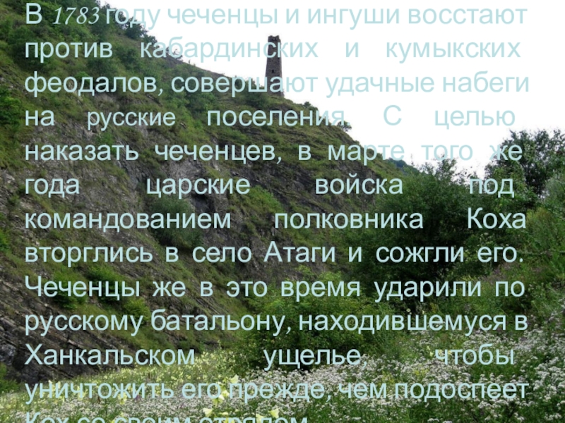 Слайд 8В 1783 году чеченцы и ингуши восстают против кабардинских и кумыкских