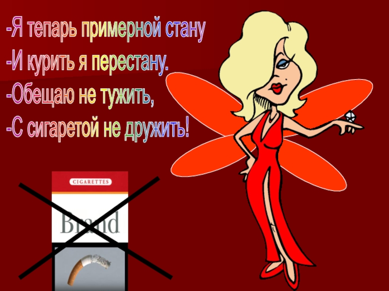 -Я тепарь примерной стану  -И курить я перестану.  -Обещаю не тужить,  -С сигаретой не