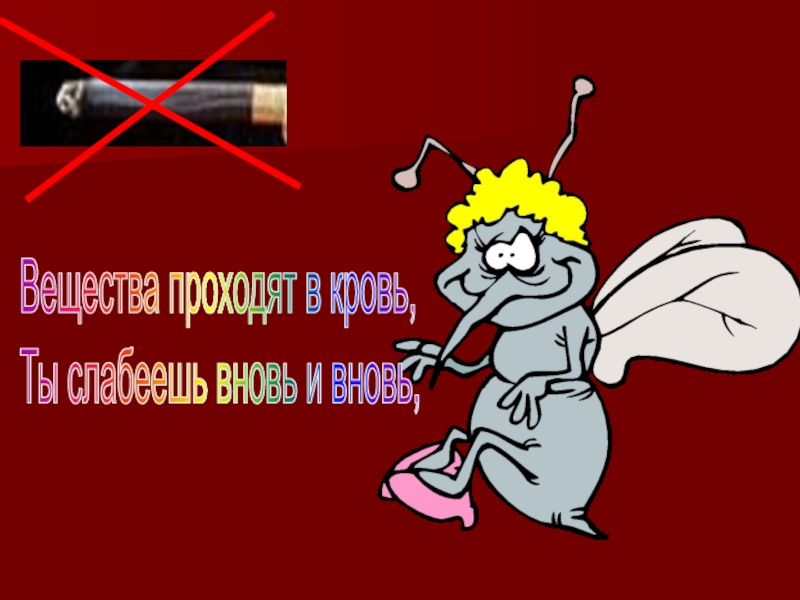 Слайд 14Вещества проходят в кровь, Ты слабеешь вновь и вновь,