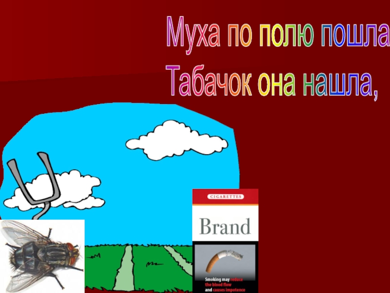 Слайд 3Муха по полю пошла Табачок она нашла,