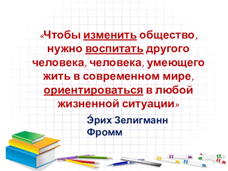 Слайд 2«Чтобы изменить общество, нужно воспитать другого человека, человека, умеющего жить в