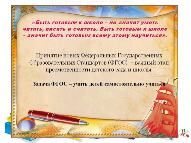 Слайд 17«ШКОЛА НЕ ДОЛЖНА ВНОСИТЬ РЕЗКОГО ПЕРЕЛОМА В ЖИЗНЬ ДЕТЕЙ. ПУСТЬ, СТАВ