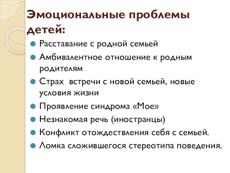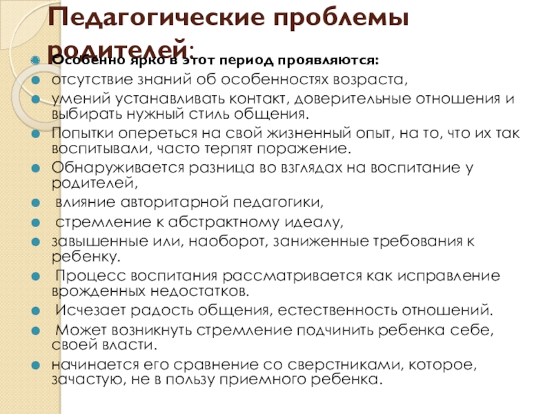 Несоответствие приемного ребенка представлениям родителей: ожидания часто не совпадают с реальностью поведения, развития приемного ребенка.