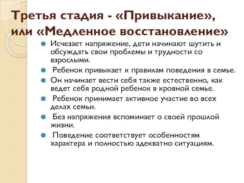 Слайд 14Третья стадия - «Привыкание», или «Медленное восстановление»