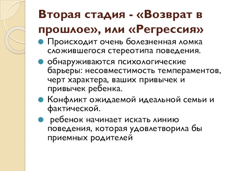 Слайд 12Вторая стадия - «Возврат в прошлое», или «Регрессия»