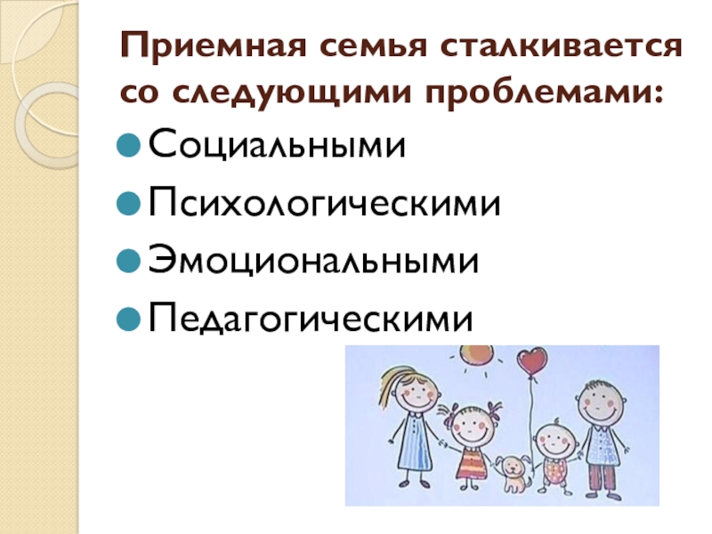 Слайд 4Приемная семья сталкивается со следующими проблемами: