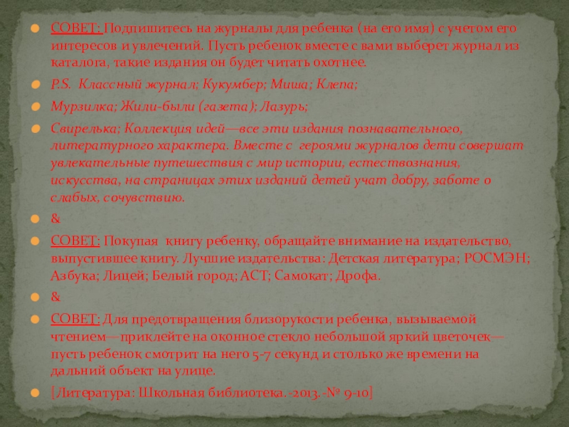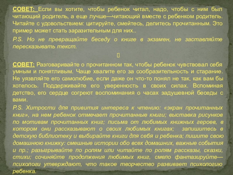 СОВЕТЫ ДЛЯ РОДИТЕЛЕЙ