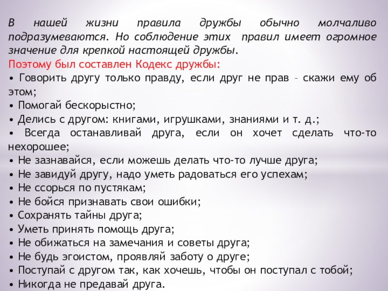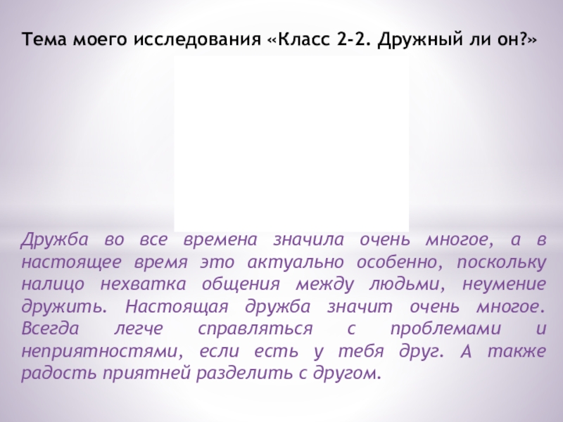 значила очень многое, а в настоящее время это актуально особенно, поскольку налицо нехватка общения между людьми, неумение дружить. Настоящая дружба значит очень многое. Всегда легче справляться с проблемами и неприятностями, если есть у тебя друг. А также радость приятней разделить с другом.
