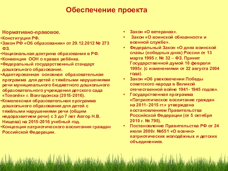 Закон РФ «Об образовании» от 29.12.2012 № 273 ФЗ.