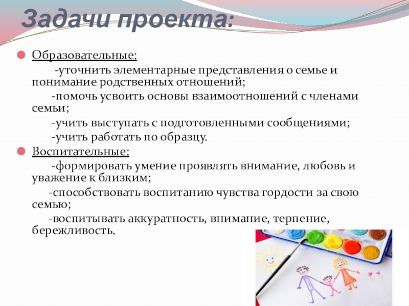 -помочь усвоить основы взаимоотношений с членами семьи;