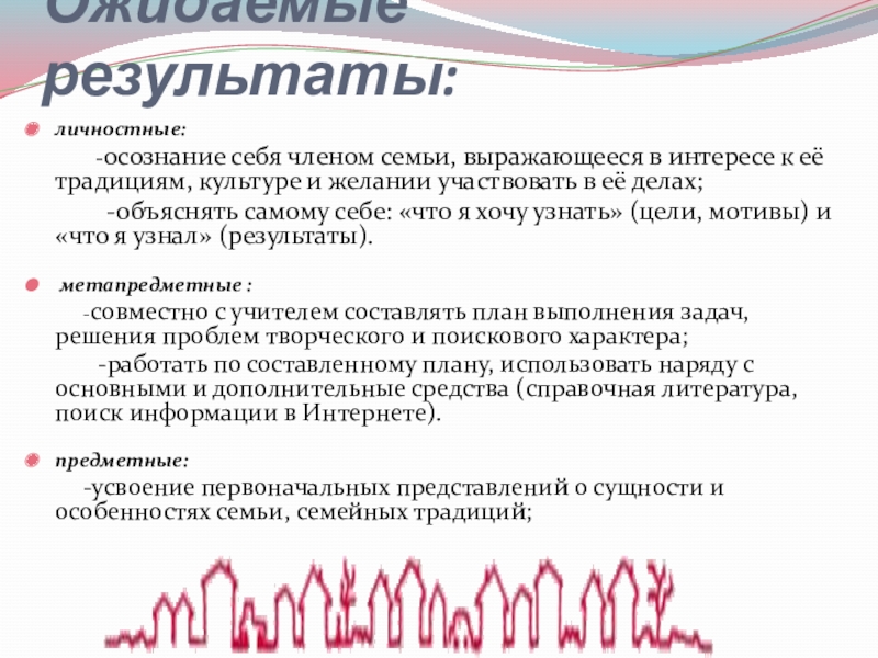 -усвоение первоначальных представлений о сущности и особенностях семьи, семейных традиций;