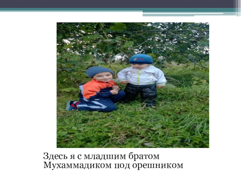 Слайд 4Здесь я с младшим братом Мухаммадиком под орешником