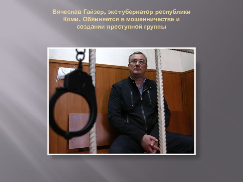 Слайд 19Вячеслав Гайзер, экс-губернатор республики Коми. Обвиняется в мошенничестве и создании преступной