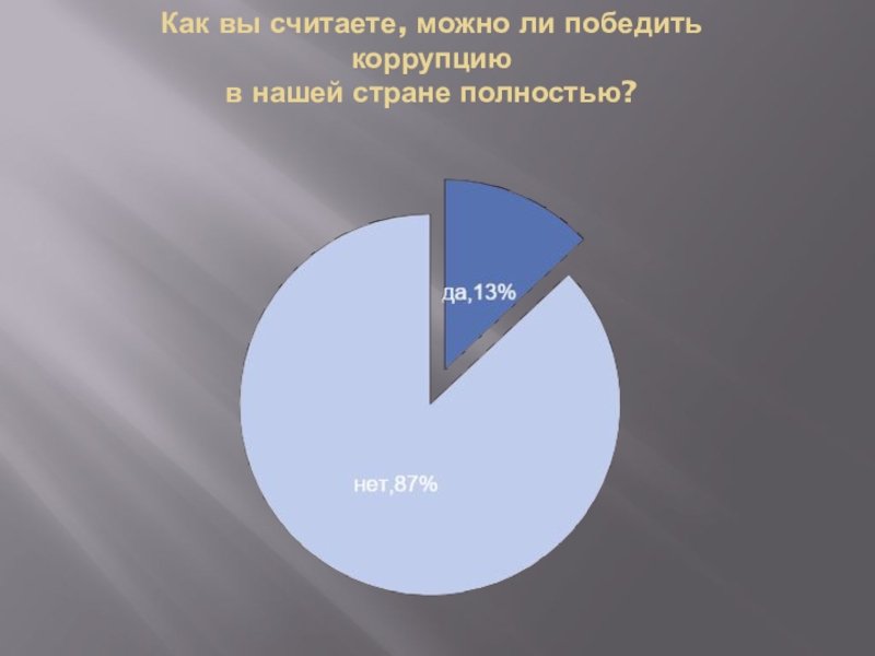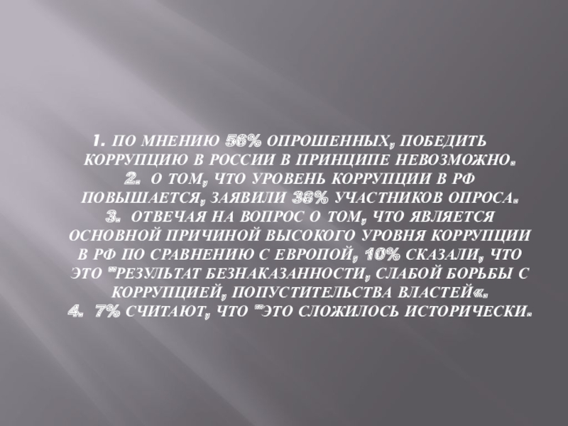 Слайд 33По мнению 56% опрошенных, победить коррупцию в России в принципе невозможно.