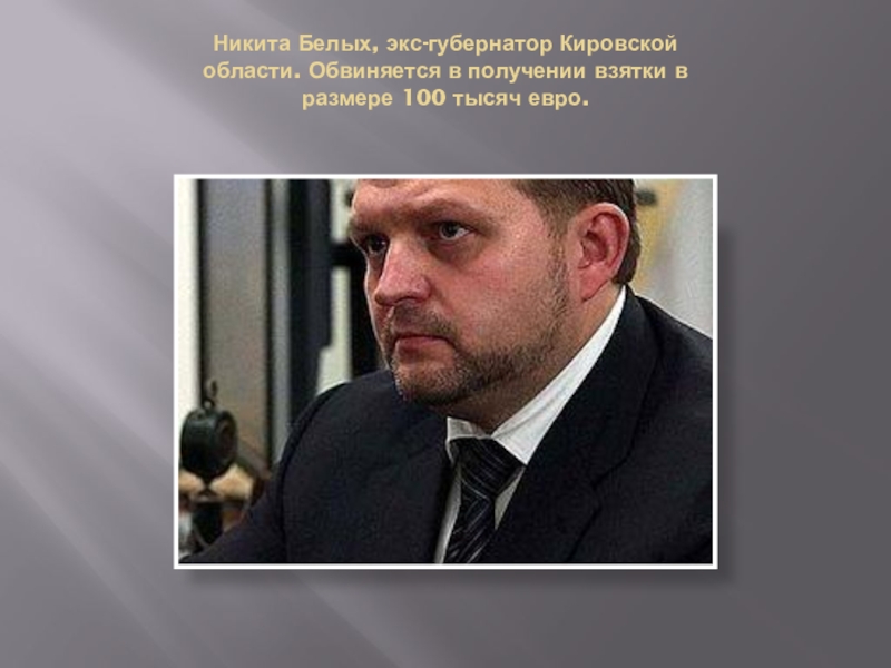 Слайд 17Никита Белых, экс-губернатор Кировской области. Обвиняется в получении взятки в размере