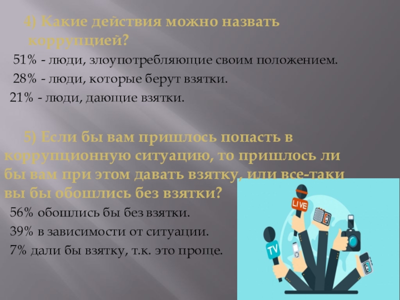 Слайд 38 4) Какие действия можно назвать коррупцией?