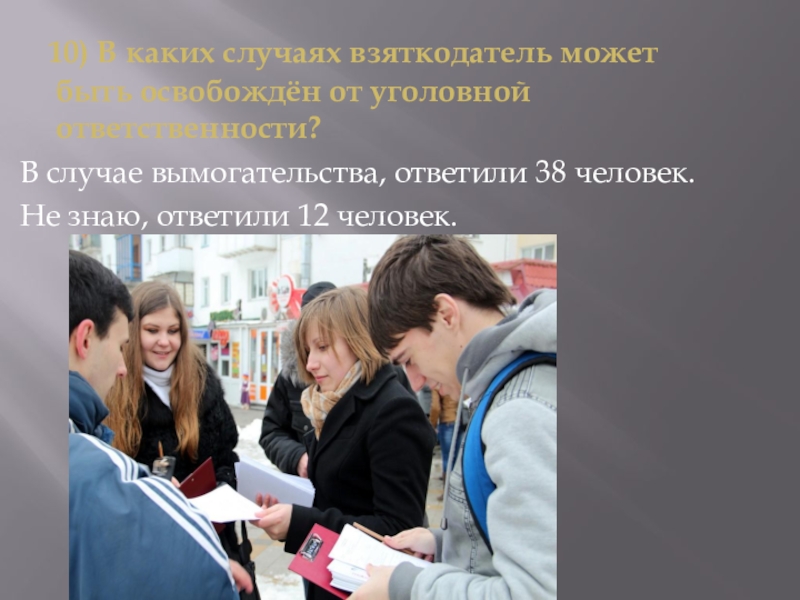 Слайд 41 10) В каких случаях взяткодатель может быть освобождён от уголовной ответственности?
