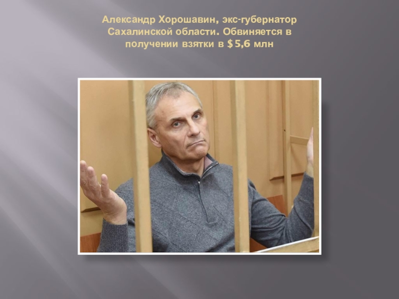 Слайд 20Александр Хорошавин, экс-губернатор Сахалинской области. Обвиняется в получении взятки в $5,6