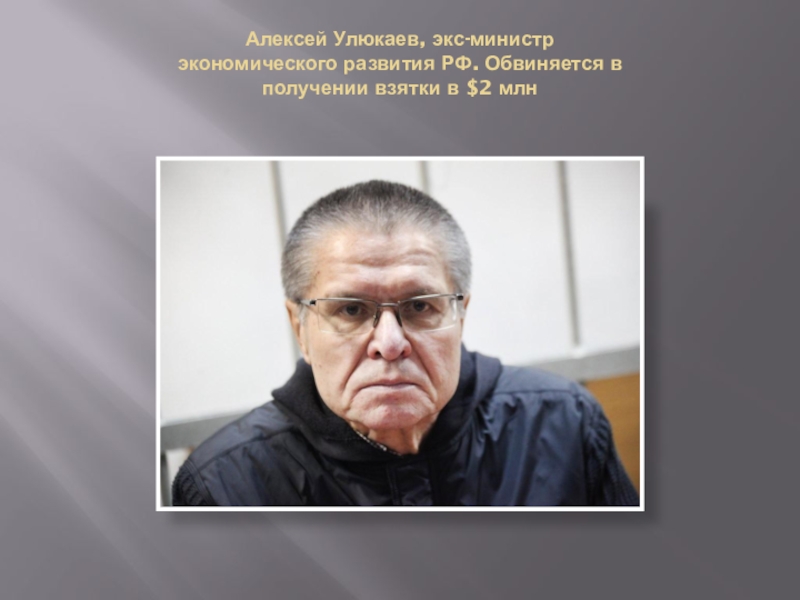Слайд 22Алексей Улюкаев, экс-министр экономического развития РФ. Обвиняется в получении взятки в