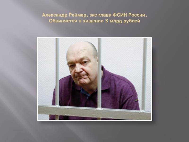 Слайд 18Александр Реймер, экс-глава ФСИН России. Обвиняется в хищении 3 млрд рублей